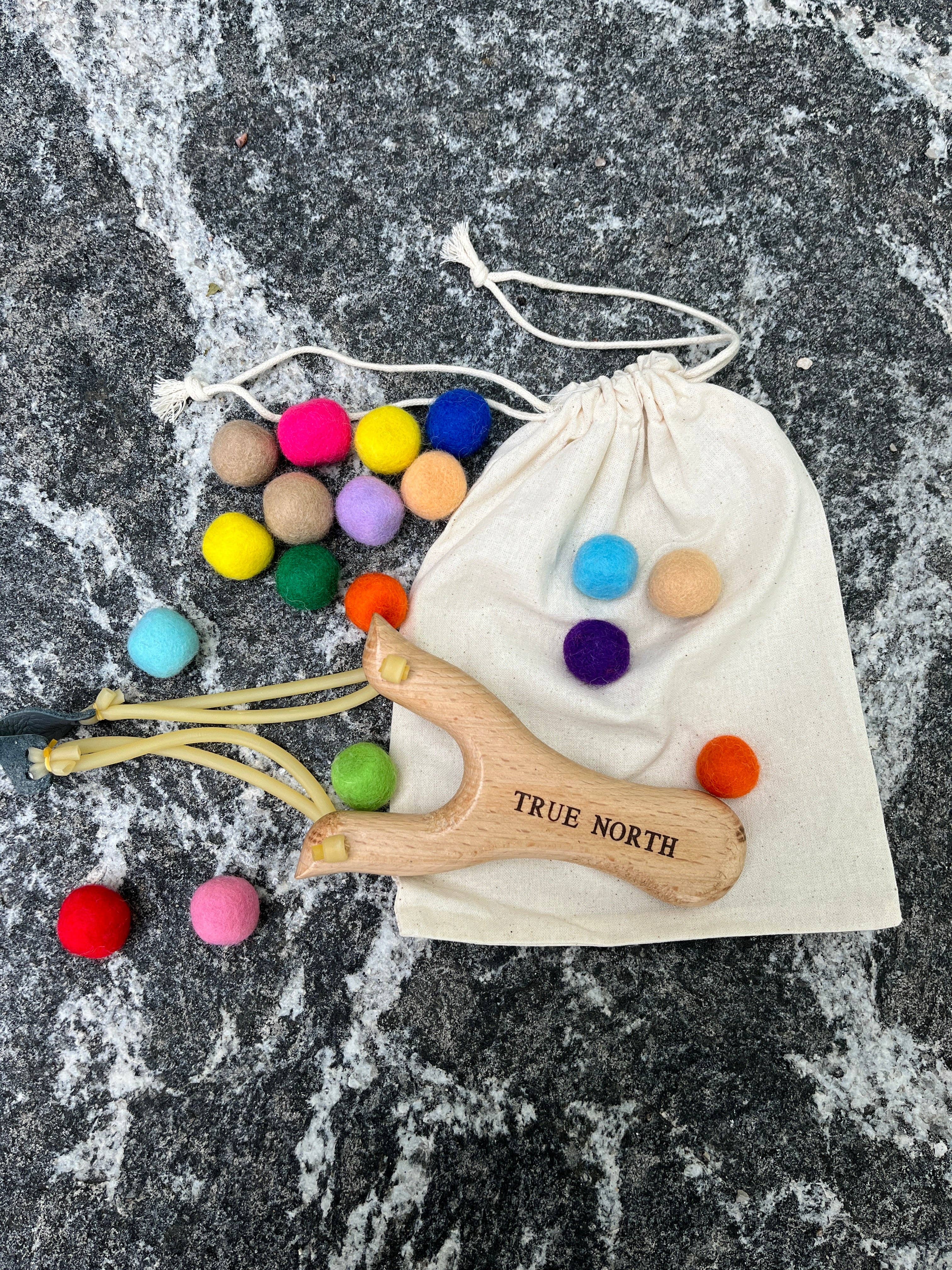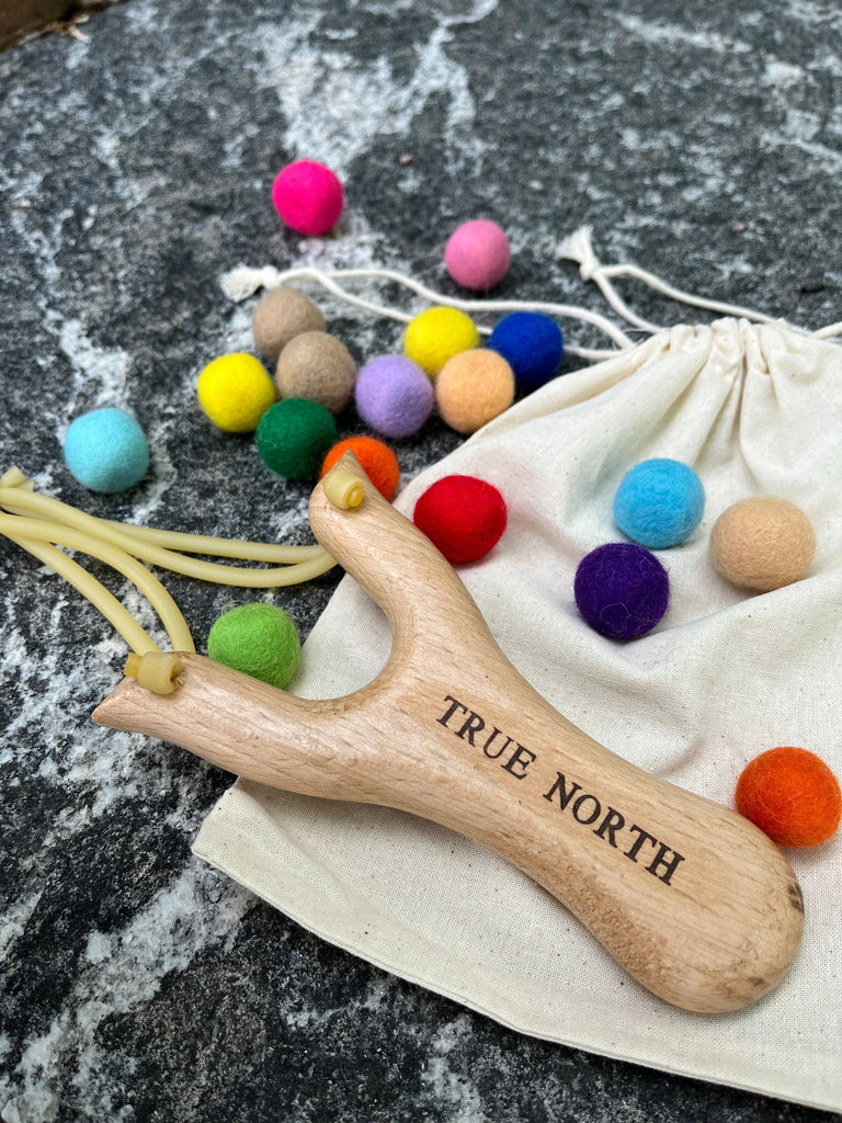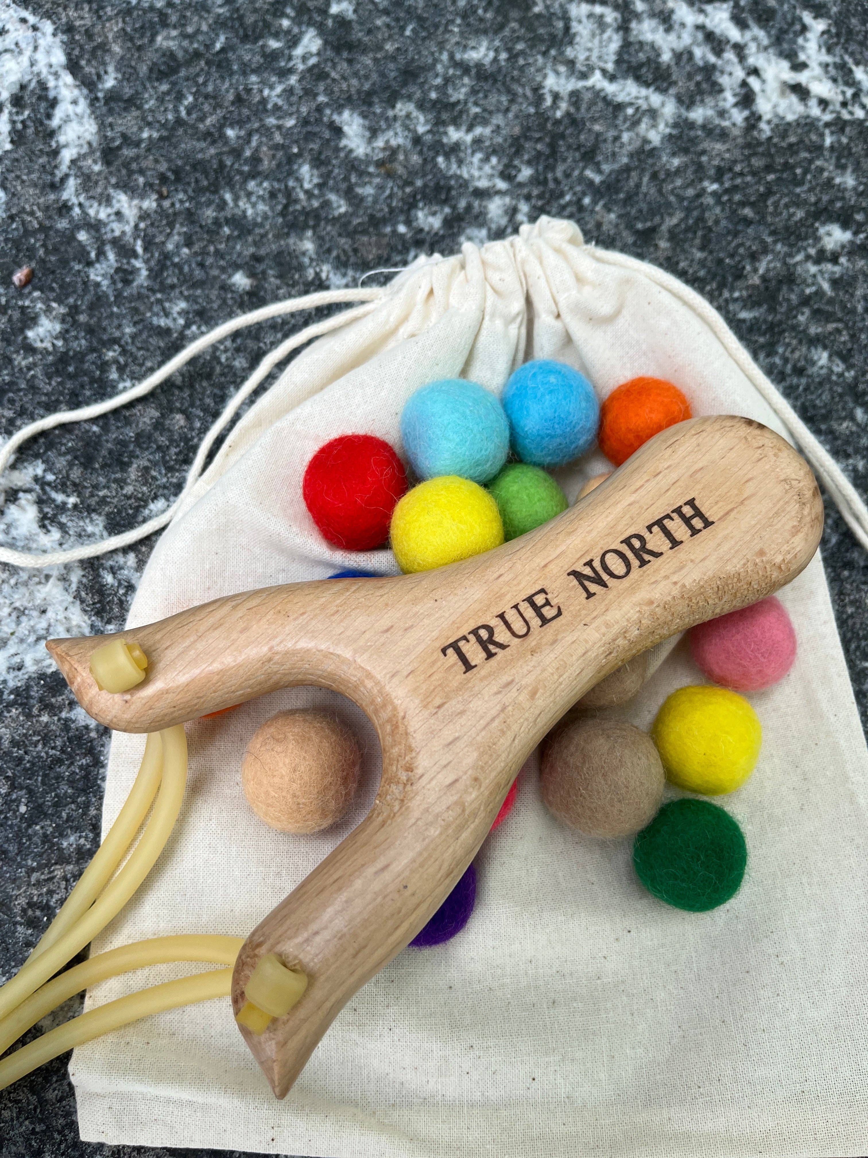 "True North" Wooden Slingshot with Felt Balls Made in Canada by Artisan Trading Post