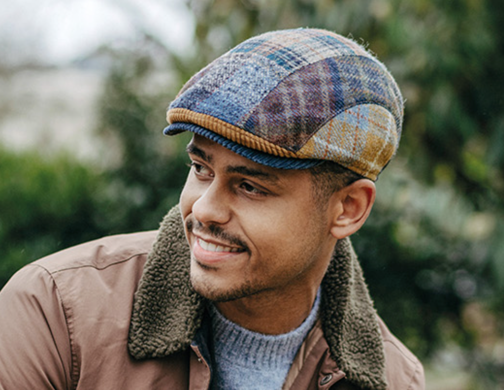 Baxter K (Patchwork and Beige stripe) wool flat cap - Göttmann 530