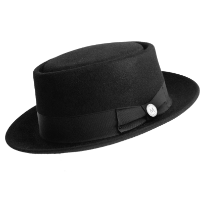 This Haven porkpie hat, handmade in Canada by Magill, features a structured wall and water-repellent material. With a 2 inch brim and adjustable fit, it combines classic style and function. The cotton sweat band ensures comfort for formal or dress occasions.