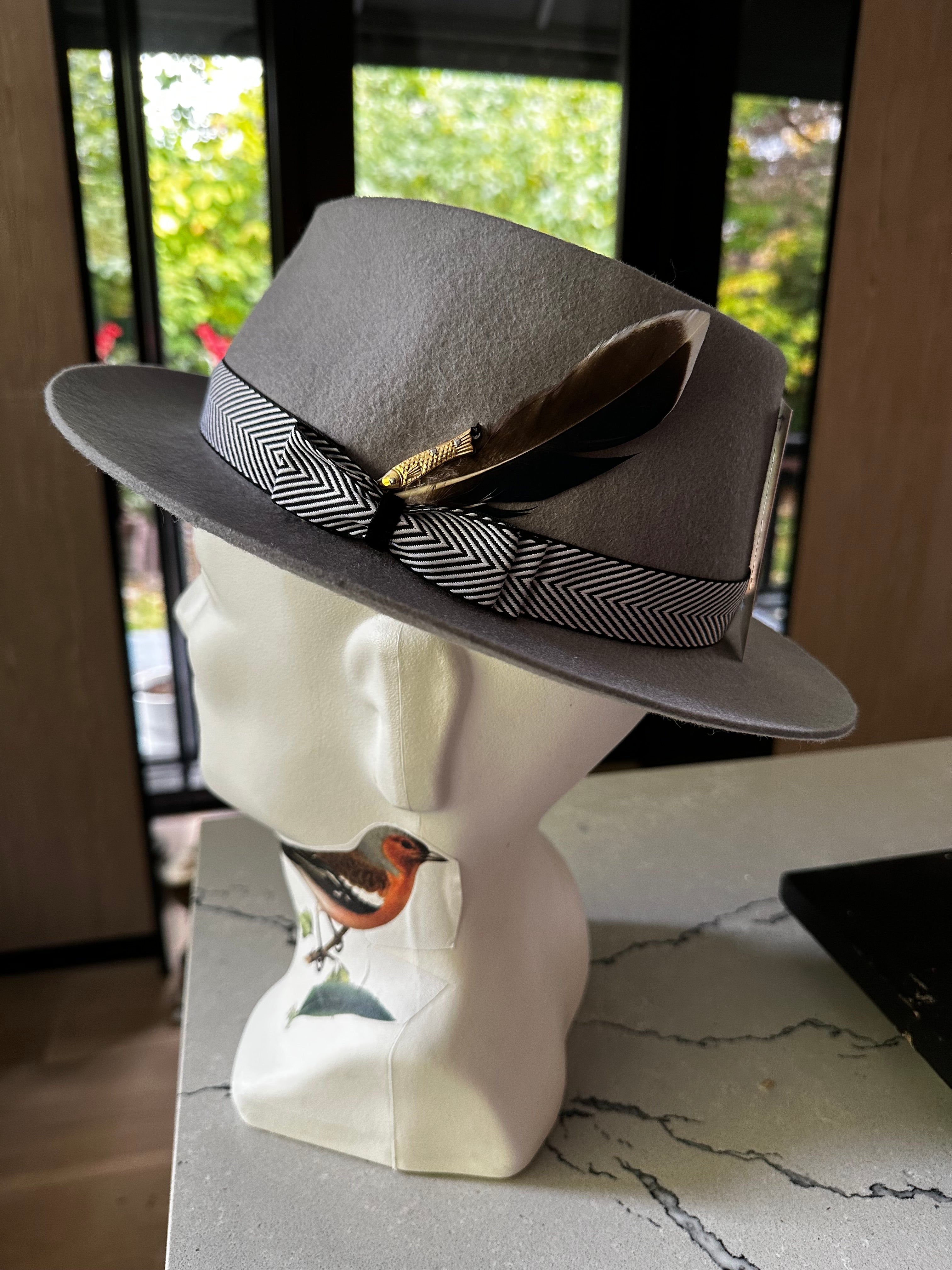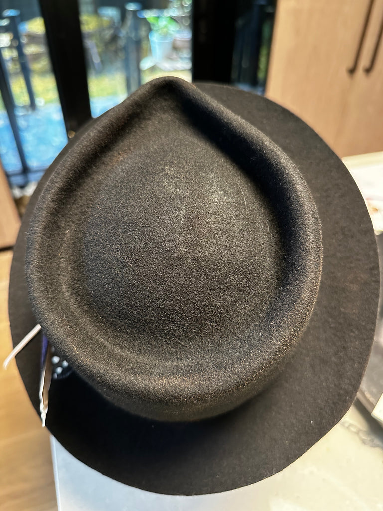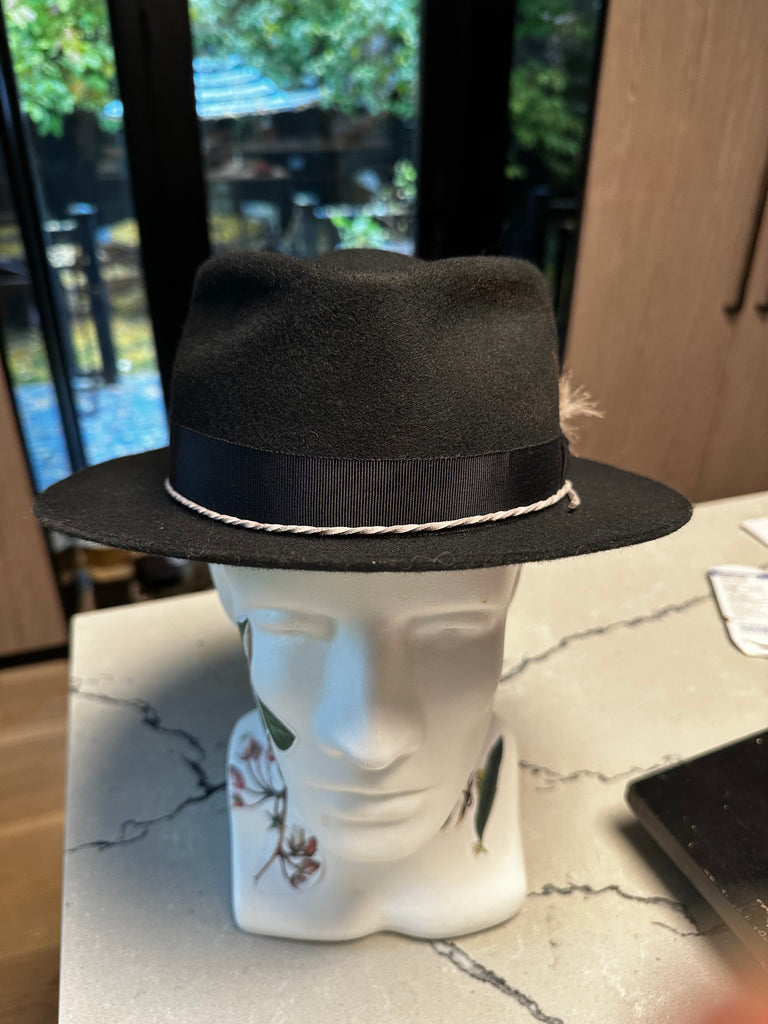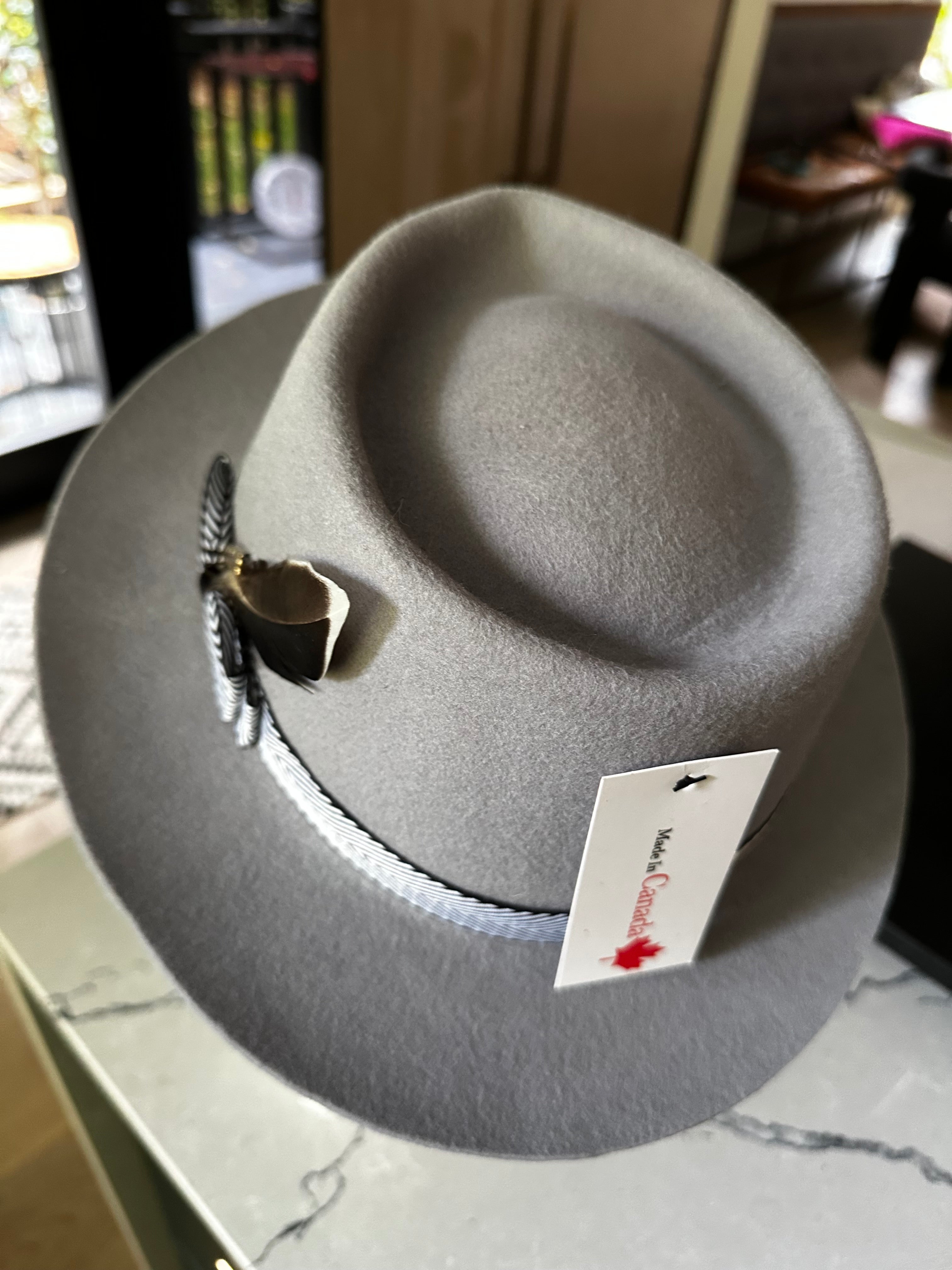 Chase your Goldendoodle through Brewer Park in this tear-drop crown fedora built for comfort and fitted with a handy knife to cut your fishing line then transform your casual evening gear into a chic outfit after rinsing off your dirty dogs.