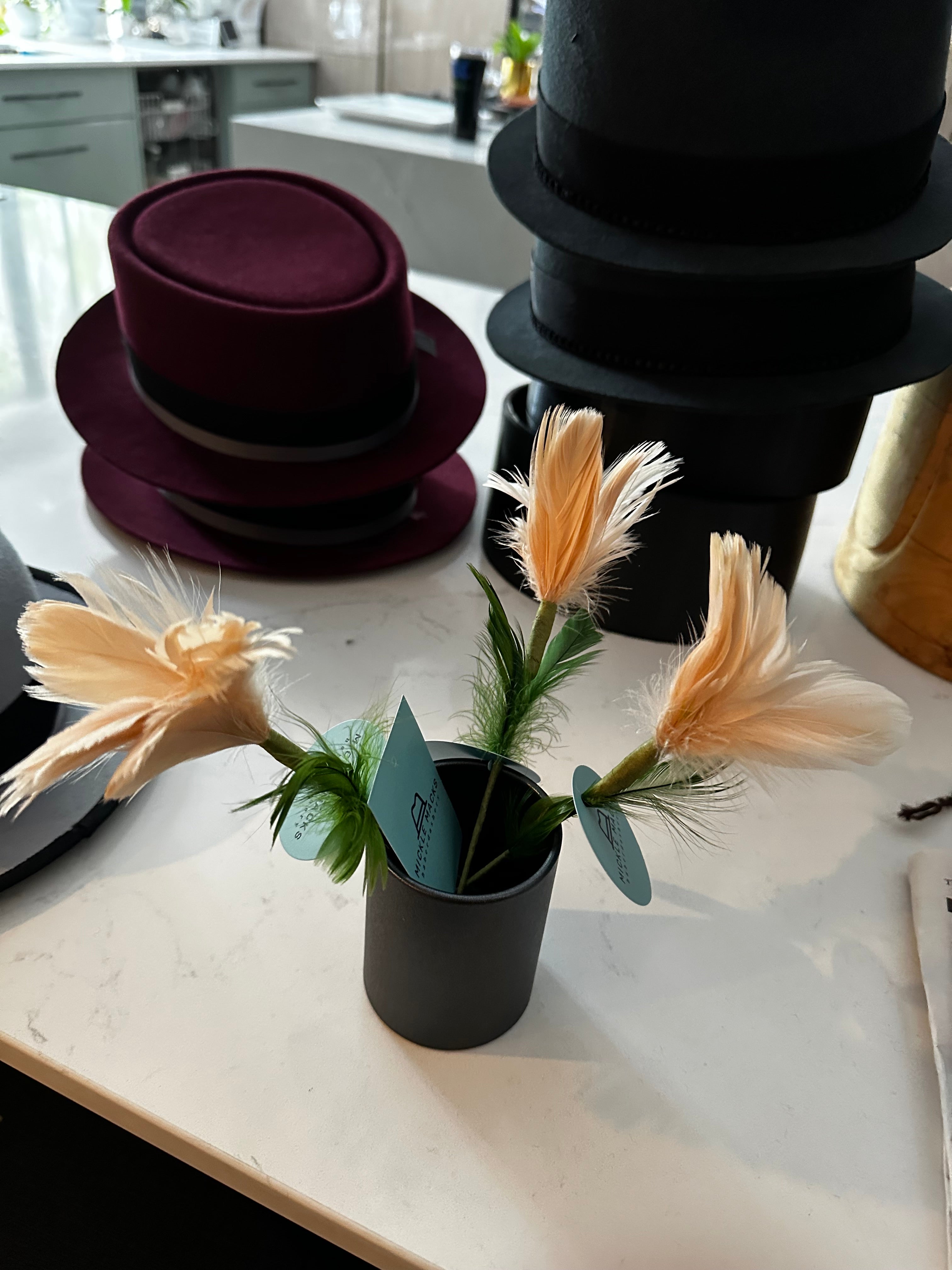 Large feathers about 6’’ or longer, various colours, including pheasant and peacock feathers.