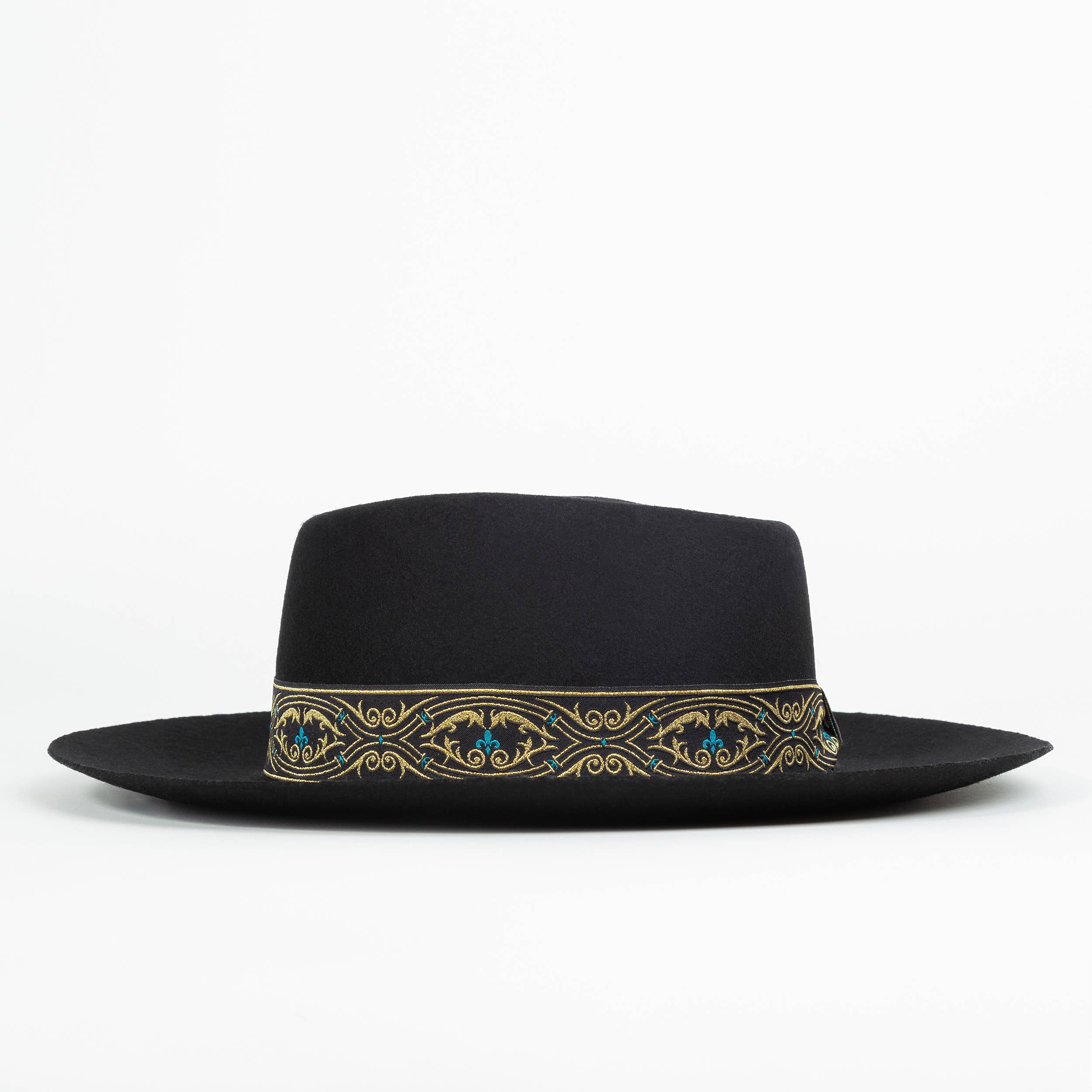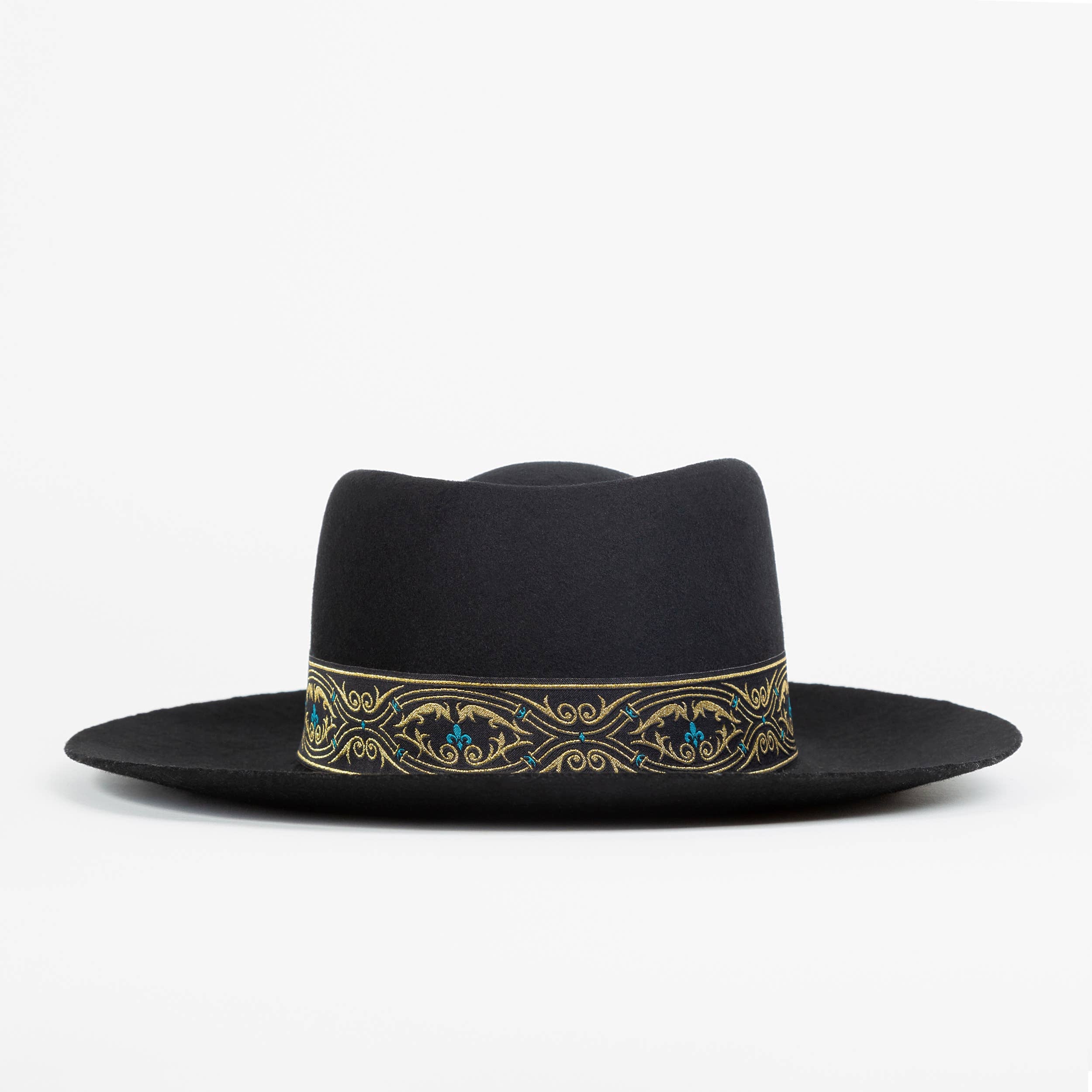 The Royale Black is pure decadence in hat form with a luxurious combination of black wool and Elegancia Tropical's exclusive art déco-inspired hat band.