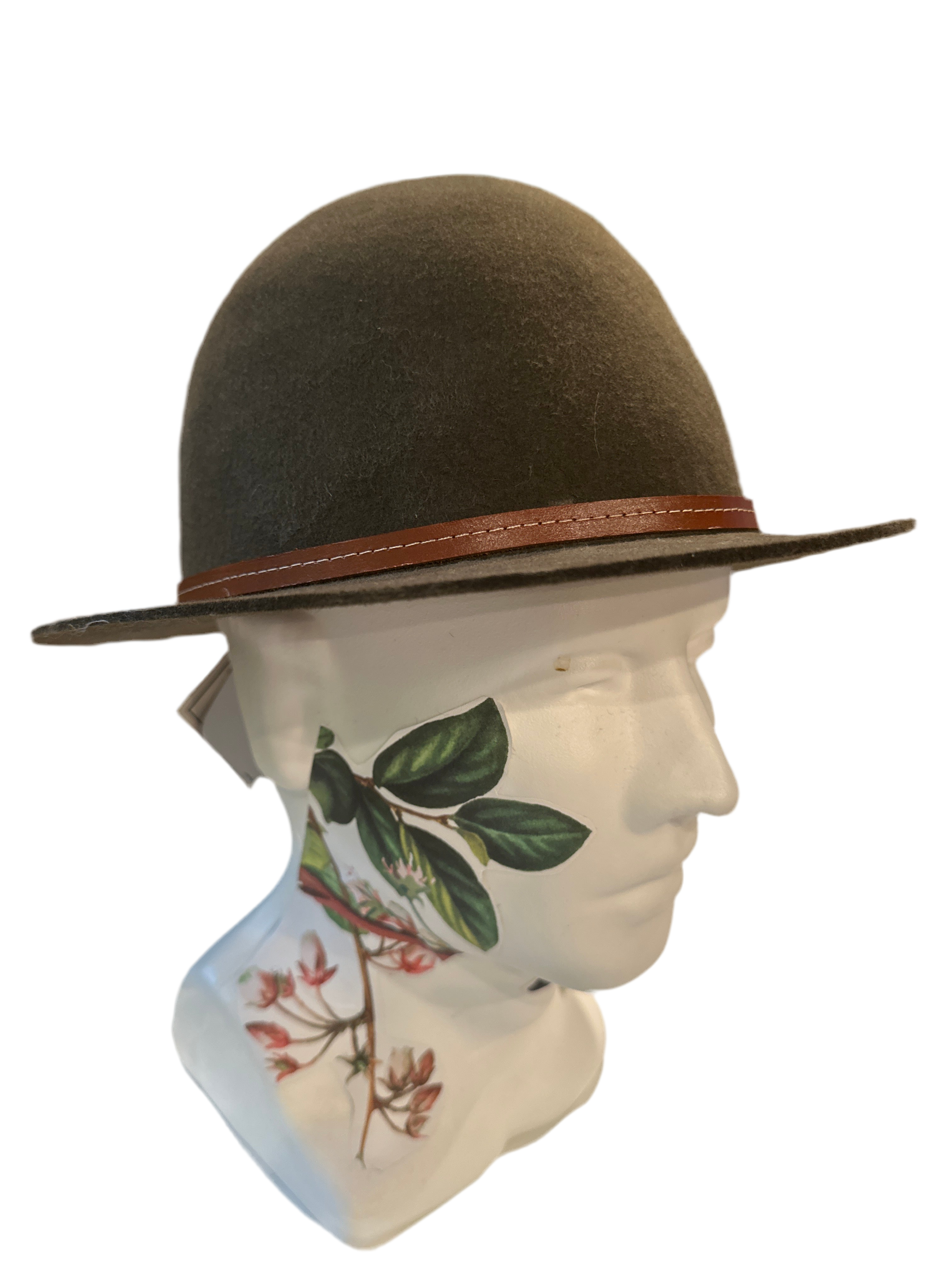 Elegancia - Santa Fe Olive Green Mountain Bowler Felt Hat - Unisex - adjustable