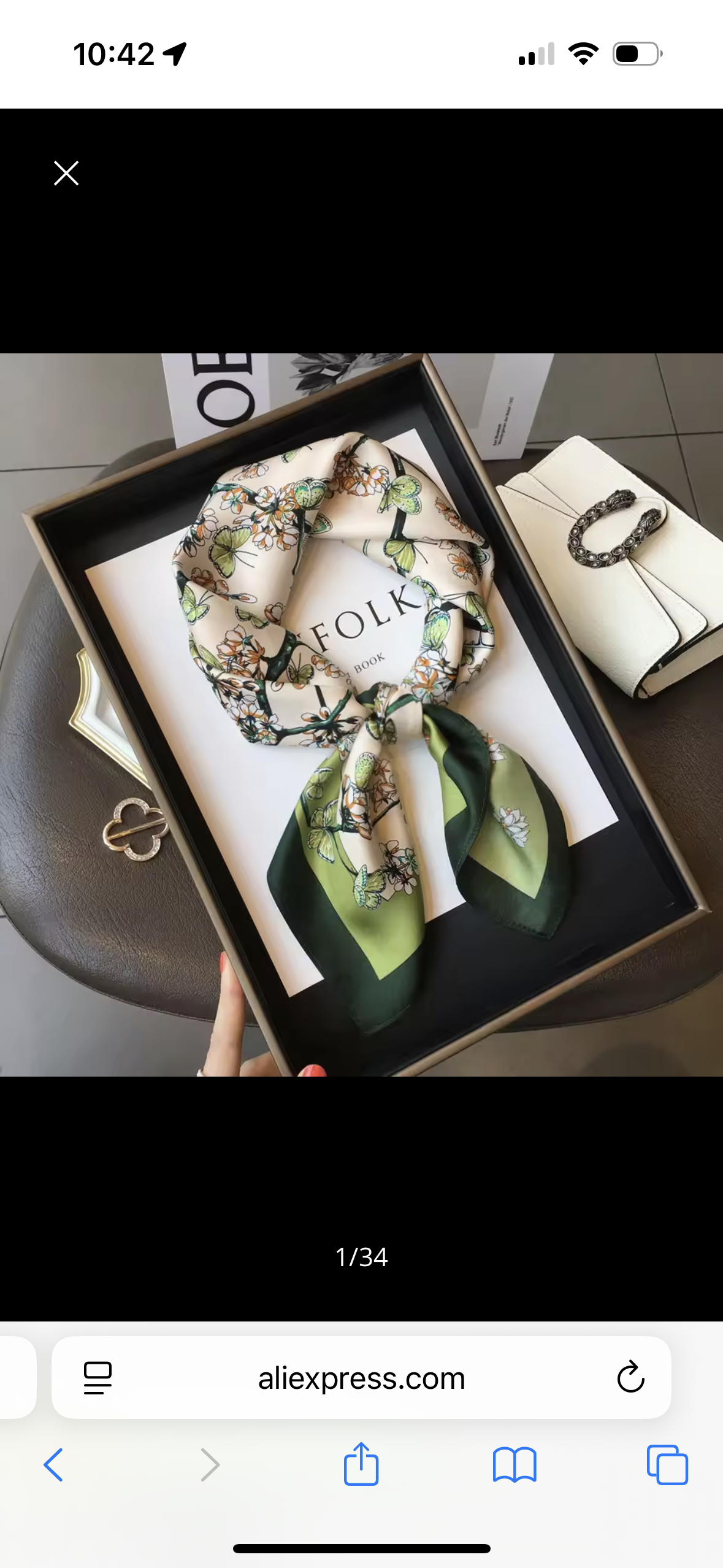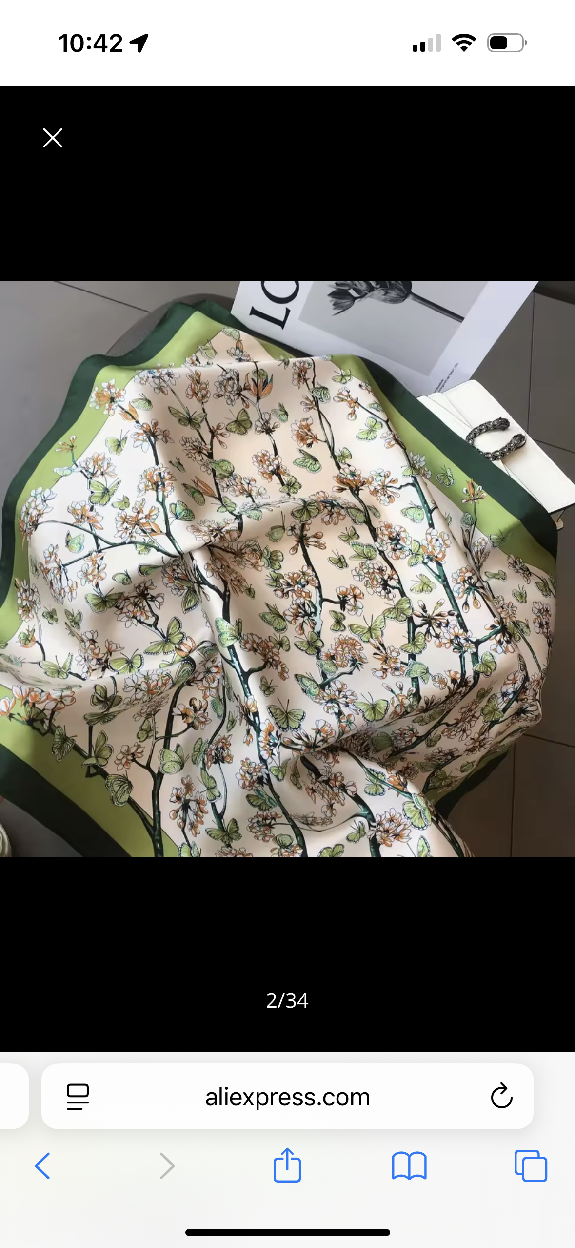 Green butterfly and branches Fine Silk Bandana scarf