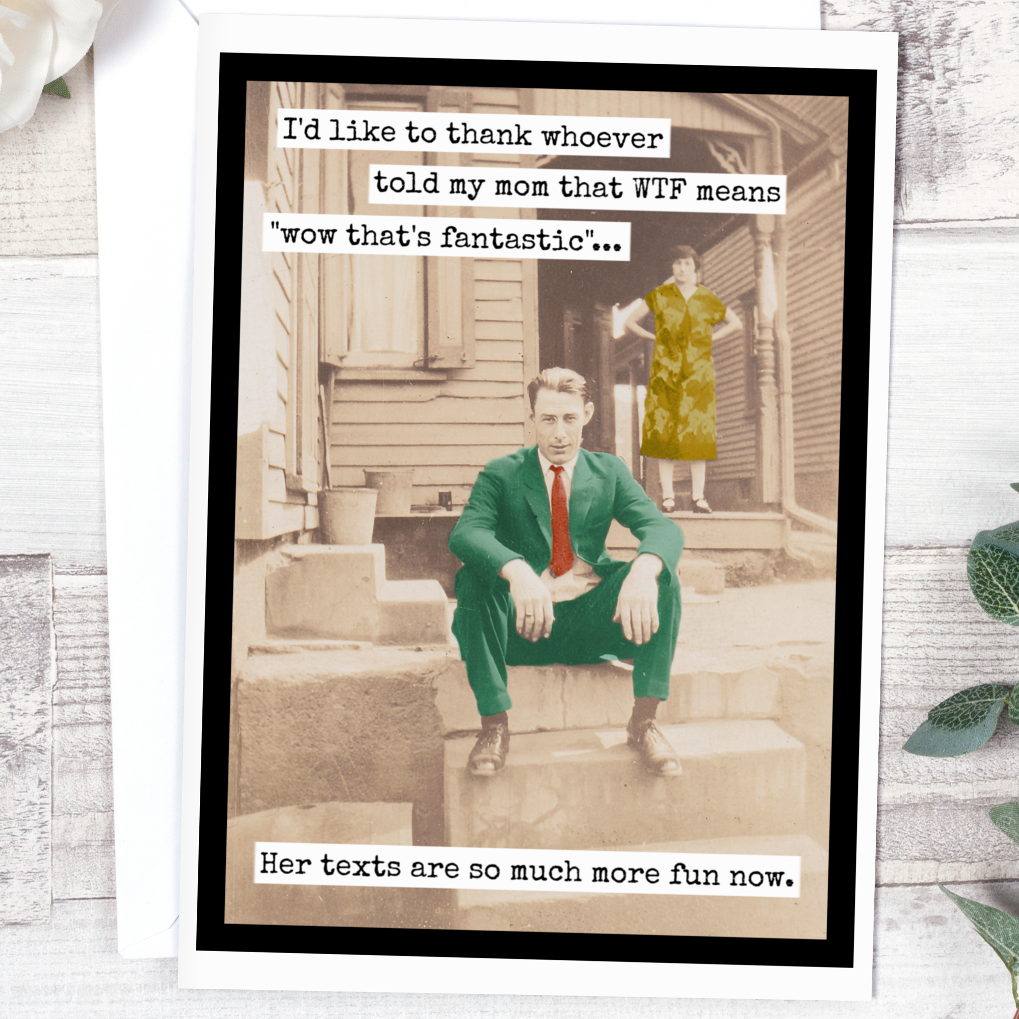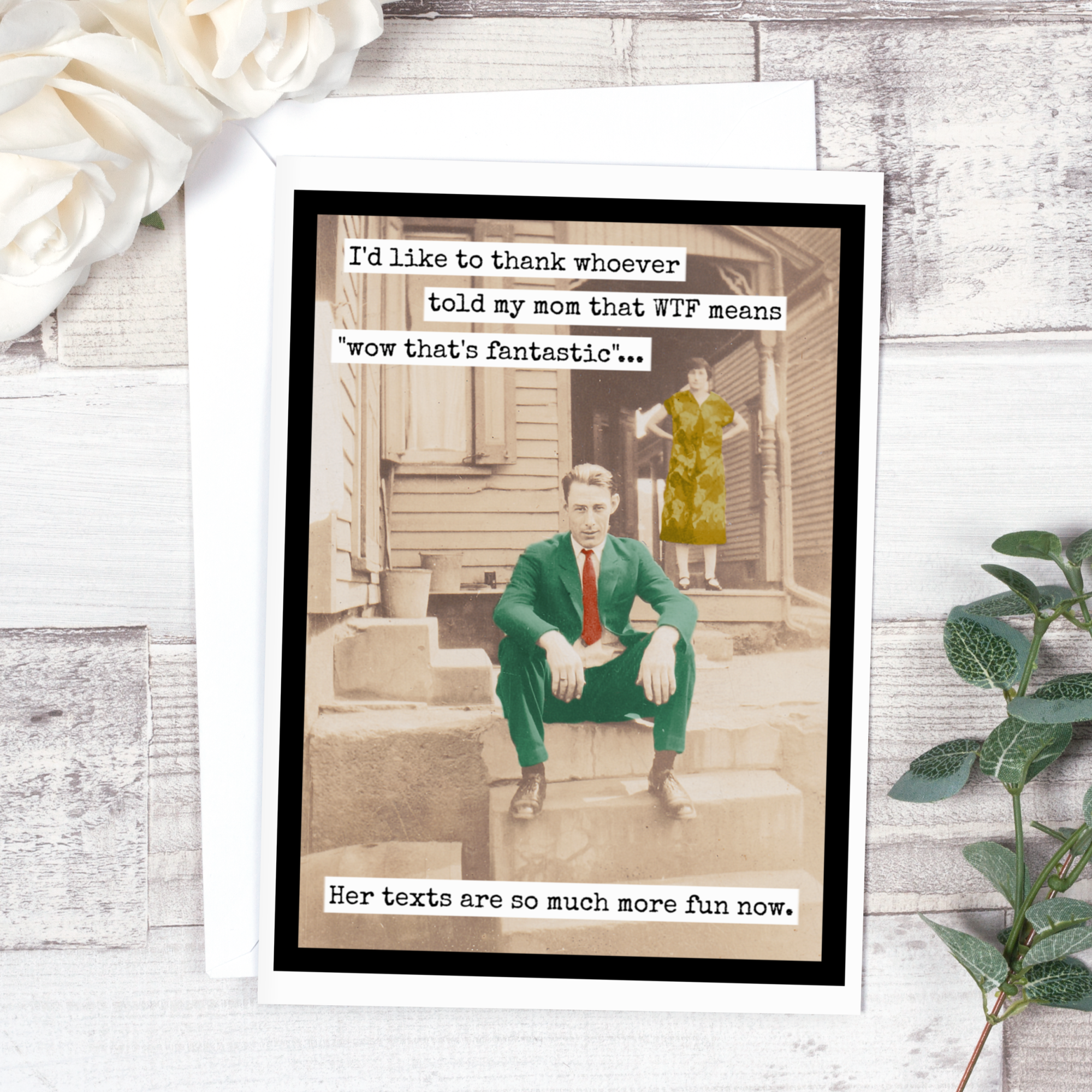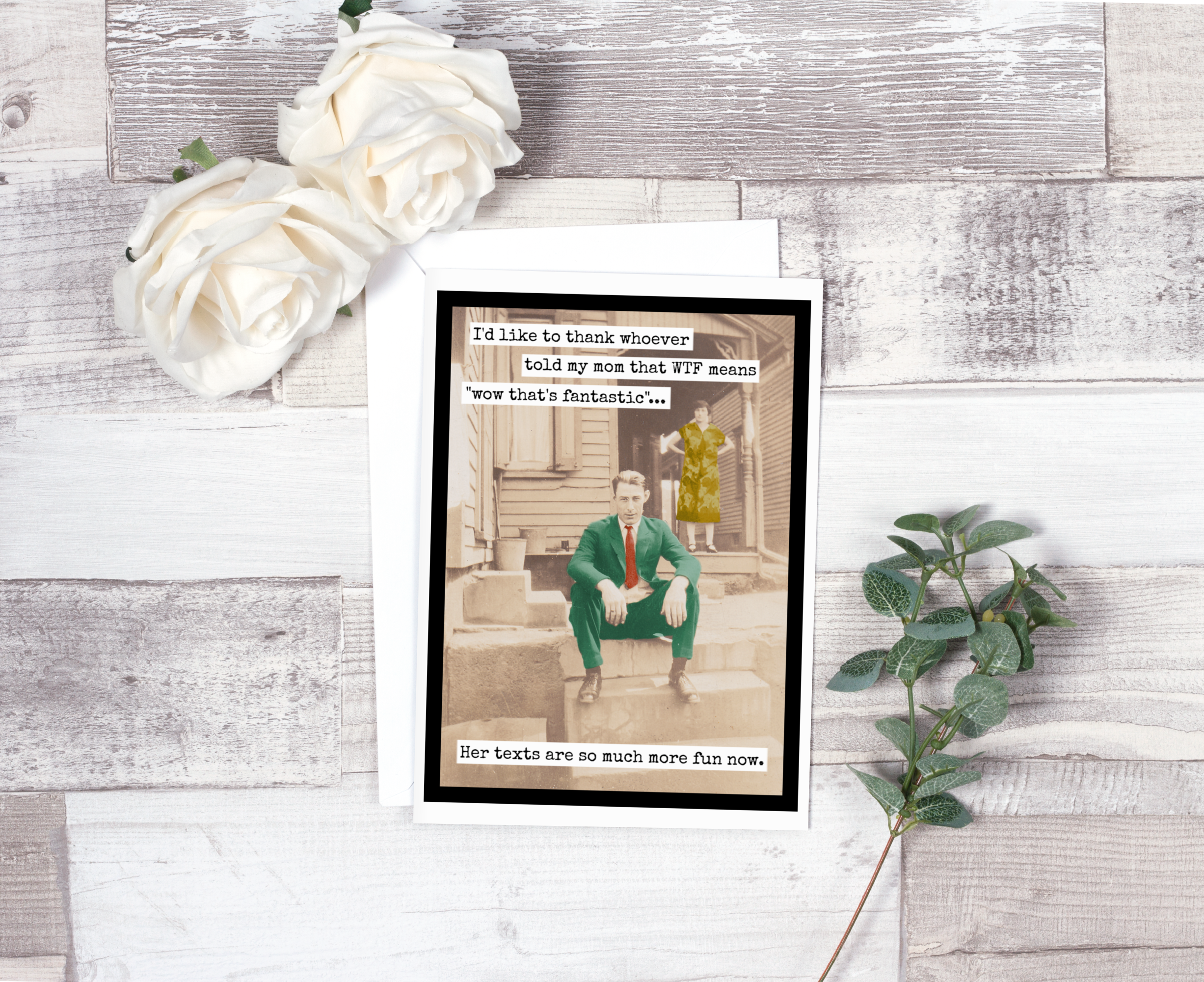 I'd Like To Thank Whoever Told My Mom That WTF Means... Greeting Card by Raven's Rest Studio